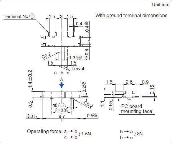 外(wài)形圖![]() 焊接處尺寸圖![]() 自(zì)A方向看(kàn)。 電(diàn)路(lù)圖![]() 包裝規格載帶