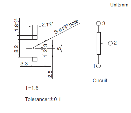 外(wài)形圖![]() 安裝孔尺寸圖![]() 自(zì)插入側看(kàn) 端子(zǐ)排列/電(diàn)路(lù)圖![]() 包裝規格散裝