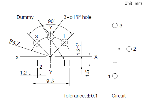 安裝孔/端子(zǐ)排列圖 DUMMY 端子(zǐ),請(qǐng)在電(diàn)路(lù)上(shàng)以開(kāi)放(fàng)狀态使用(yòng)。