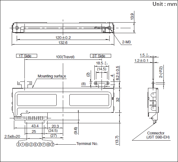 将軸(操縱杆)放(fàng)置在端子(zǐ)1側的(de)終端,測量端子(zǐ)1和(hé)2之間(jiān)的(γde)電(diàn)阻值。然後,把軸(操縱杆)放(fàng)置在端子(zǐ)3側的(de)終端,測量端子(zǐ)2和(hé)3之間(jiān)的(de)有(yǒu)抽頭的(de)時(shí),旋轉(移動)軸(操縱杆),測量抽頭與端子(zǐ)2間(jiān)的(de)最小(xiǎo)電(diàn)阻值。