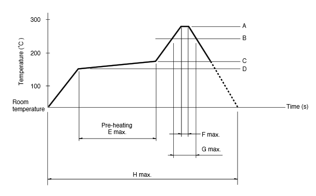 | 260℃ | 230℃ | 180℃ | 150℃ | 2 min. min. | 3s | 40s | 230s max. | 1 time max. |