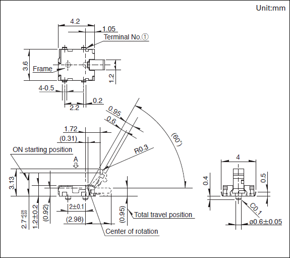 型:立式 / 薄型控制(zhì)杆型 ・ 最大(dà)額定值:1mA 5V DC ・ 動作(zuò)力:0.$35N max. ・ 操作(zuò)壽命(無負載):50,000 cycles