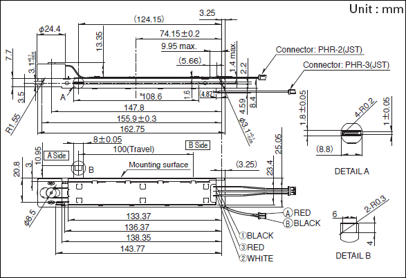 如(rú)圖所示, 請(qǐng)盡量避免以偏離(lí)操作(zuò)部中心線的(de)地(dì)方為(wèi§)作(zuò)用(yòng)點的(de)使用(yòng)方法。因為(wèi) B 尺寸越長(cháng)就(jiù)越影(yǐng)響滑動觸感, 所以✘請(qǐng)通(tōng)過實際使用(yòng)條件(jiàn)予以确認。