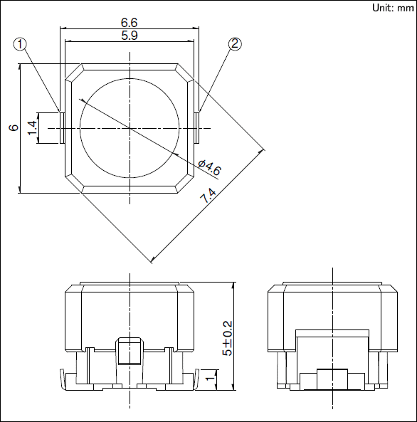 SKPS系列 産品編号 SKPSACE010TACT Switch™ 表面貼裝式 6.0×5.9mm低(dī)接觸電(diàn)阻型(表面貼裝)SKPSACE010